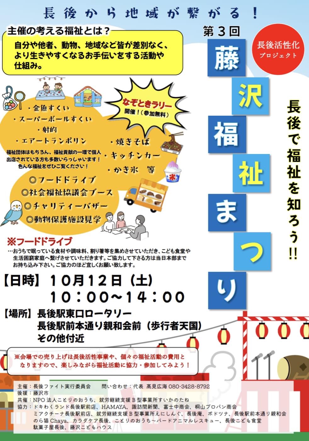 令和6年10月12日(土)に「第3回 藤沢福祉まつり」に藤沢市居宅介護支援事業所連絡協議会も介護相談ブースとして昨年に続き参加させて戴きました。